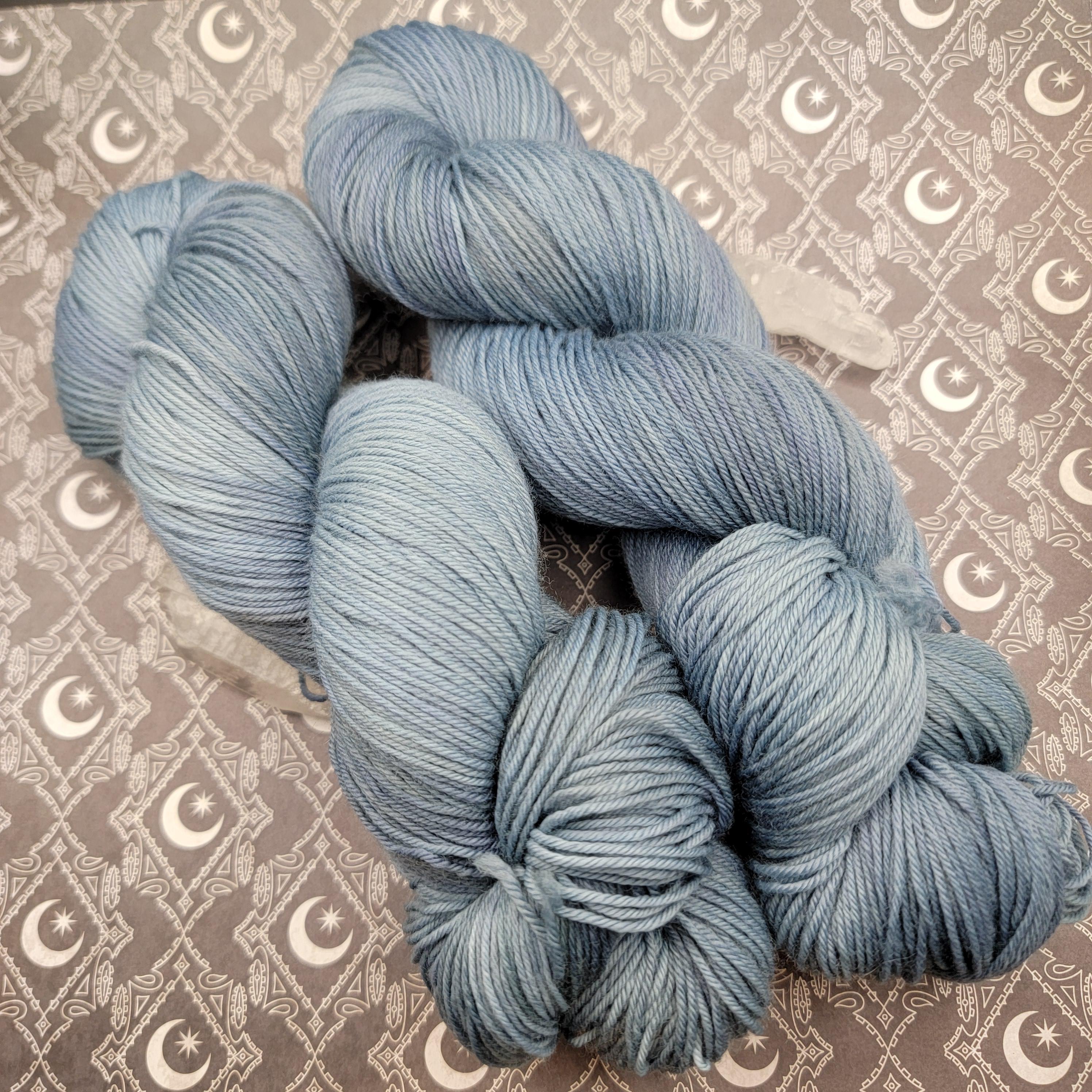 Each skein is a spell in fiber—soft, resilient, and imbued with intention. The dyeing process is guided by lunar energy and sacred ritual, making this yarn ideal for projects that carry personal meaning, spiritual resonance, or quiet beauty.