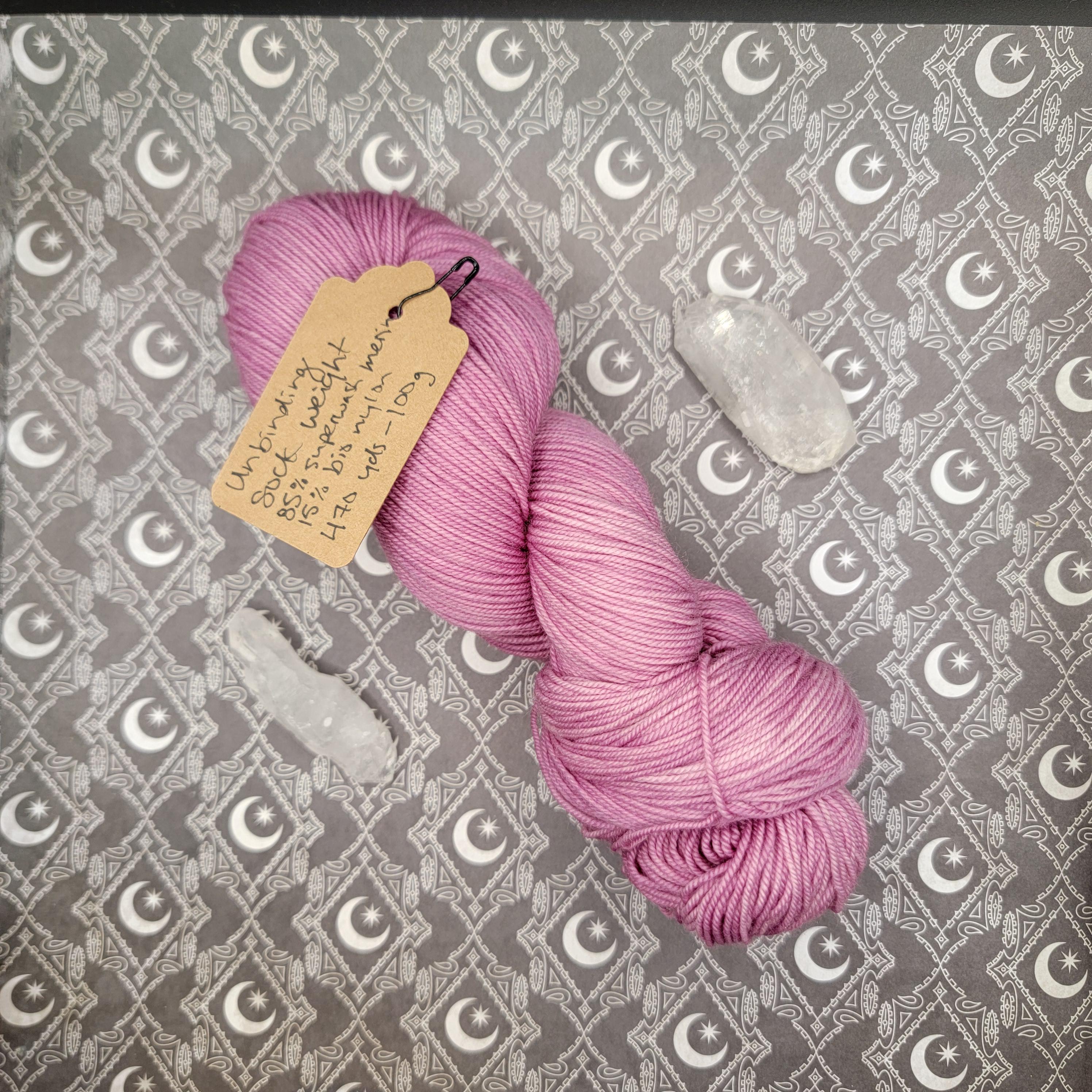 Each skein is a spell in fiber—soft, resilient, and imbued with intention. The dyeing process is guided by lunar energy and sacred ritual, making this yarn ideal for projects that carry personal meaning, spiritual resonance, or quiet beauty.