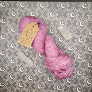 Each skein is a spell in fiber—soft, resilient, and imbued with intention. The dyeing process is guided by lunar energy and sacred ritual, making this yarn ideal for projects that carry personal meaning, spiritual resonance, or quiet beauty.